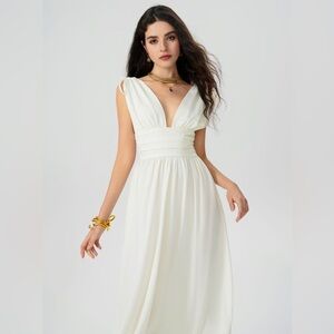 Cider V-Neck Ruffle Backless Maxi Dress, White, Size XS