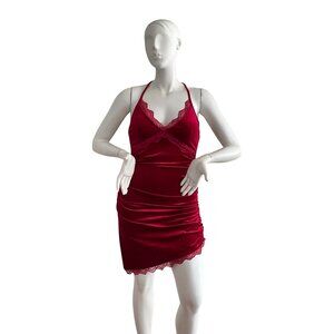 Cider Velvet Lace Trim Ruched Slit Asymmetrical Dress L