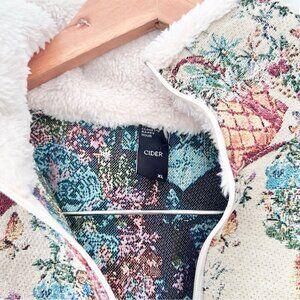 Cider cream fleece pullover quarter zip with cat kitten cottagecore tapestry top. Viral on TikTok. Drawstring at bottom. Excellent condition.