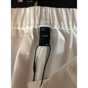 Elevate your wardrobe with these stylish Cider wide-leg trouser pants, designed for women in size 3X. These pants feature a solid pattern, cream color, and a high-rise waist, making them perfect for any occasion, whether it be casual, business, or travel. The elastic waist in the back and belt loops provide comfort and convenience, while the pockets add functionality.
