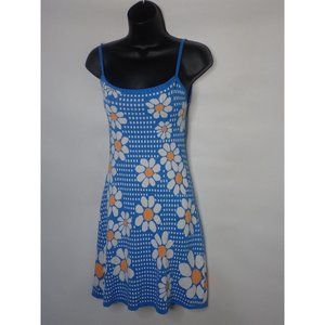 Cider Women Daisy Knit Dress Small Blue Sleeveless Casual Hippie Sleeveless