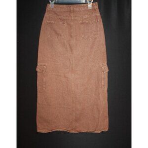Cider Women’s Size Small Denim Maxi Skirt Front Slit Pockets Chocolate Brown