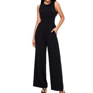 Cider Women's Size Solid Sleeveless Wide Leg Jumpsuit Black Pockets Viral