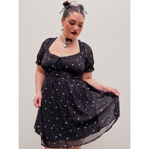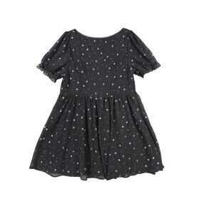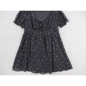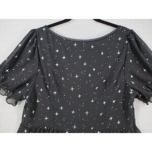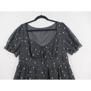 Cider Womens Starry Night Dress 1XL Black Sheer Short Sleeve Empire Waist