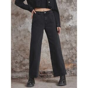 Cider Womens size Large Straight Wide Leg Denim Jeans High Rise Black
