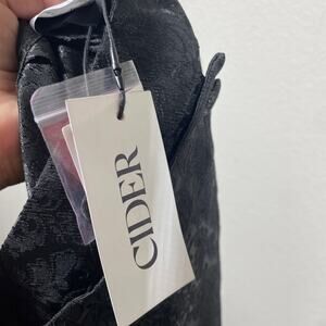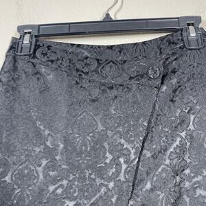 Cider XS Asymmetric Button Floral Brocade Wide Leg Cargo Pockets Pants Black