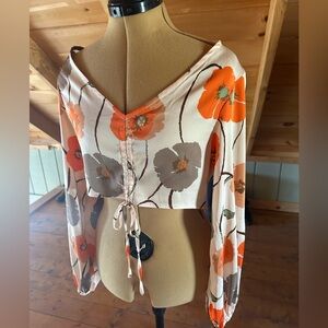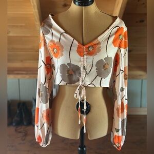 Cider crop top. Size medium. Long sleeve. Drawstring adjustable front. Boho