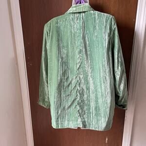 Oversized crinkle velvet sage green suit blazer with shoulder pads and buttons by Cider