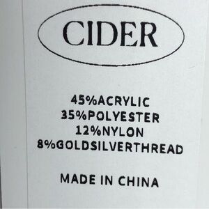 40% acrylic 35% polyester 12% nylon 8% gold thread