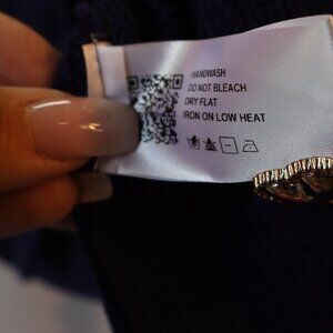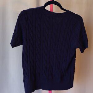 Cider short sleeve button-up cardigan sweater, Navy Blue Gold Button - Medium