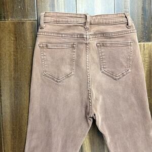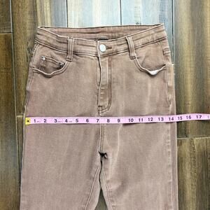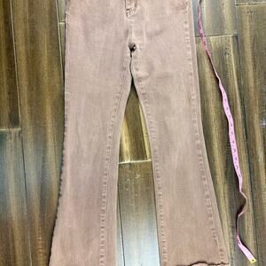 CiderSz S Brown Flare Denim Jeans High Waist Fall Belt Loop Pockets Frayed Hem