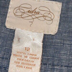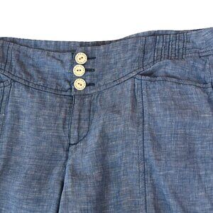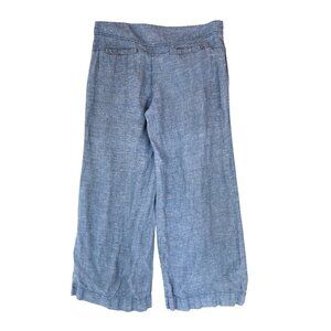 Cidra by Anthropologie Blue Linen Cropped Pants Size 12 100% Linen Wide Leg Summ