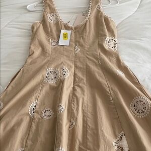 Elevate your wardrobe with the Ciccon Beige Midi Dress. Featuring delicate lace accents, this dress offers a perfect blend of elegance and style. Ideal for any occasion.