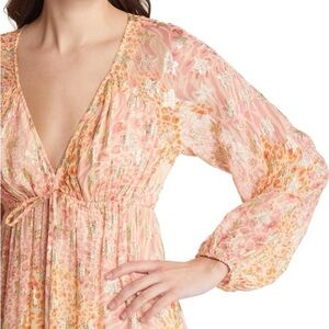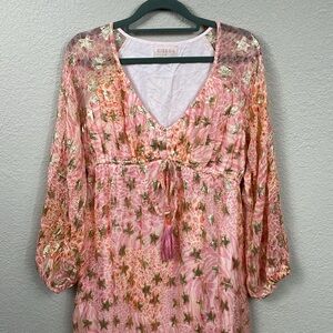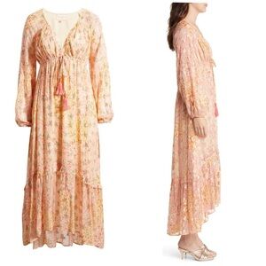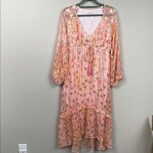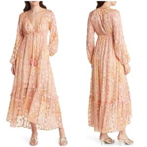 Ciebon Crissta Metallic Print Long Sleeve Maxi Dress Gold Star Boho Sz S