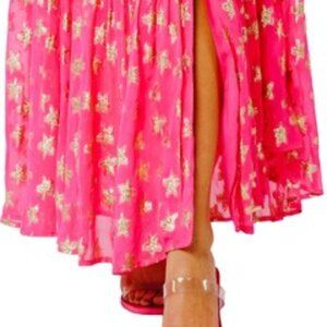 Ciebon Hot Pink Gold Loxi Metallic Star Print Maxi Dress