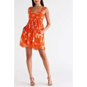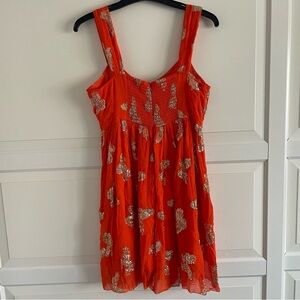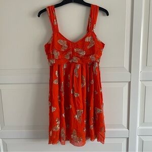 Ciebon Orange Gold Butterfly Jodie Metallic Babydoll Minidress Size Small