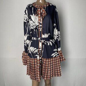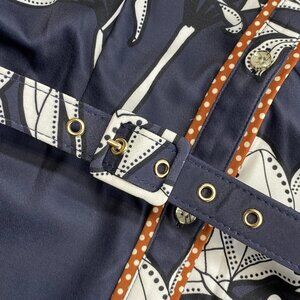 Ciebon Women’s Edda Floral Mix Print Belted Mini Dress Size M Navy Blue/Brown