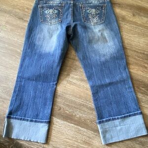 Cielo Jeans Shorts Women’s Size 13 (31) Capris Cuffed Legs Pockets Blue