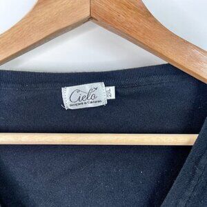 Cielo Viscose Long Sleeve V-Neck Cardigan W/ Decorative Buttons Black Womens 2XL