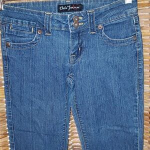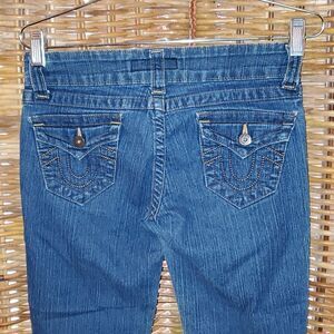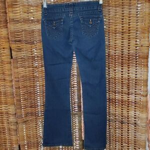 This cute jeans are in nice pre-owned condition. There are no holes, tears, or stains. Women's size 1 with a bit of a flare or bootcut.