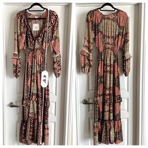Cienna Ester Maxi Boehemian Ruffle Silk Blend India Dress Size XL
