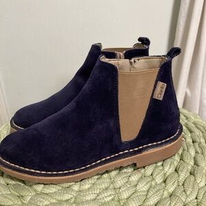 Cienta Blue/Tan Navy Blue Suede Zipper Chelsea Boots