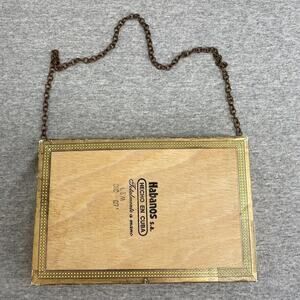 Cigar Box Purse Womens Yellow Wooden Clutch Chain Shoulder Bag Unique Handmade