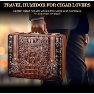 This cigar humidor box is a stylish and practical accessory for any cigar enthusiast. Made with high-quality leather and cedar wood lining, it not only keeps your cigars fresh and humid but also adds a touch of sophistication to your collection. The built-in hygrometer ensures the optimal environment for your cigars, while the convenient cigar lighter feature adds convenience to your smoking experience. With its sleek design and functionality, this humidor is a must-have for any contemporary cigar collector.