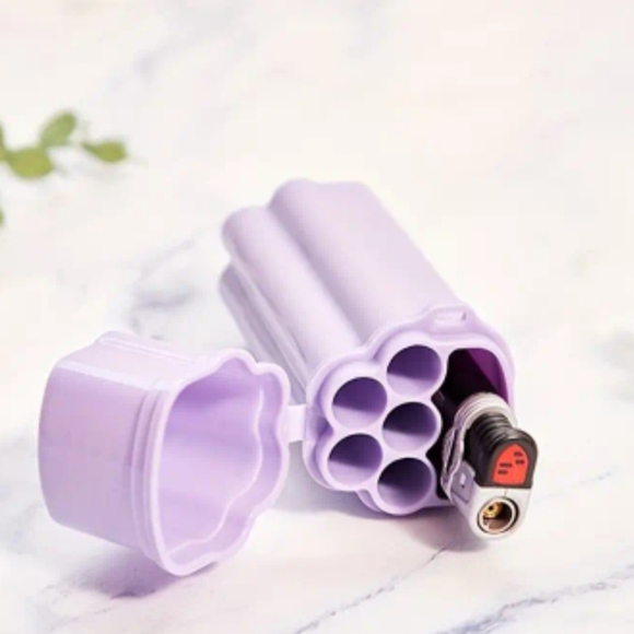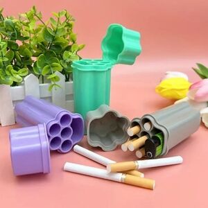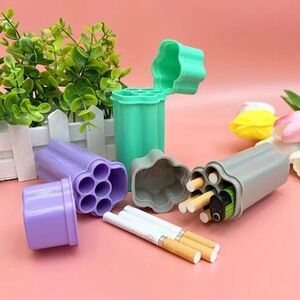 The unique one-piece flip-top design of this cigarette box provides you with a convenient experience, making it easy to store and take out cigarettes and lighter. Has 6 holes to hold 5 cigarettes and lighter.