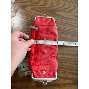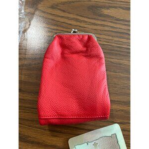 Cigarette case red leather double clip and zippered Has area for cigarettes. Bottom area snaps closed, maybe lighter or change. Has side zipper for bills possibly. NWT