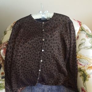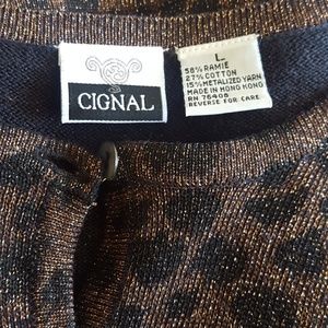 Cignal Cardigan! Animal print ! Button down to closure! 58% Ramie, 27% cotton 15% metalized yarn. Excellent condition. Please see measurements at 8th picture.