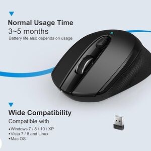 【Plug & Play design bring convenience to you】After pluging the USB receiver(stored in the battery slot) into the computer,you can start using it,no drivers need to be installed.The 2.4 GHz wireless mouse provides a fast ,powerful, reliable connection, effective up to 15 meters of range, effectively eliminates delays, dropouts, and interference.
