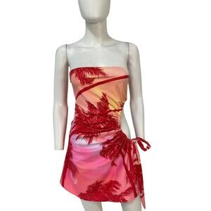 Cin Cin 'Ace' Pink Spandex Blend Cut Out Mini Dress Size S: unlined, pull-on styling, ruched side cut-out with tie closure, stretch spandex jersey fabric.