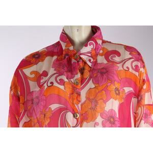 Cin Cin Long Sleeves Golden Button Floral Shirt Blouse Size M Oversized