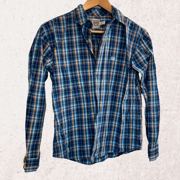Cinch Blue and Orange Button Down Shirt Lightweight Plaid