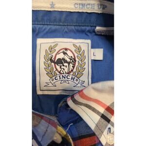 Cinch Button Down Tshirt Mens L Blue Red Plaid Short Sleeve Ranch Outdoor FLAW