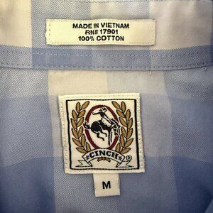 Cinch Check Pattern Button-Down Long-Sleeve Shirt Blue Men's Medium 100% Cotton