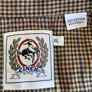 Cinch Cotton Long Sleeve Button Down Collard Checked Mens Shirt Size XL