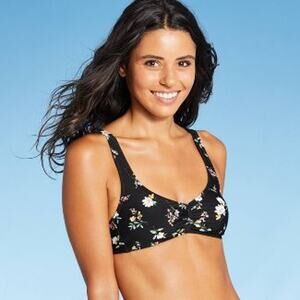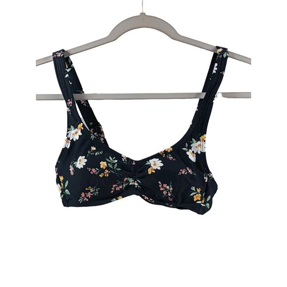 Cinch Front Bralette Bikini Top Xhilaration Black Floral Print XS Swimsuit Beach