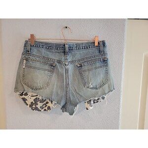 These shorts show signs of wear and have been cut precisely to fit as short denim shorts! Waist size 33"