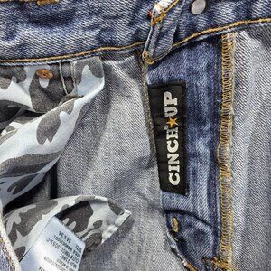 Brand details: "CINCH UP" interior label; coin pocket patch with laurel/globe graphic