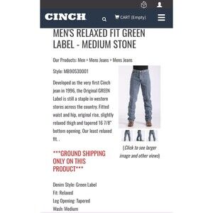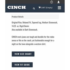 Cinch Men Green Label Relaxed Fit Blue Jeans 38 X 30 Tapered Western Ranch Denim