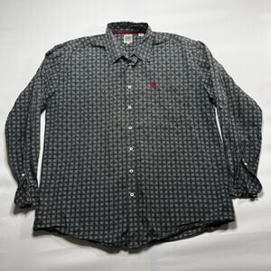 Cinch Men's Long Sleeve Black White Geo Print Button Up Shirt - Size XL