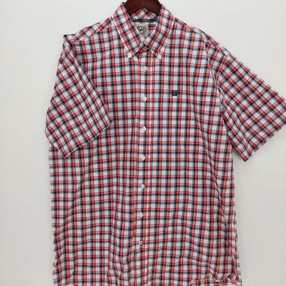 Cinch Men's Plaid Button-Up Short Sleeve Shirt Red/White/Black Size M Rodeo Core