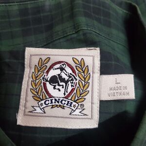 Cinch Men's Shirt Large Green Plaid Button Down Woven Cowboy Rodeo Ranch Western