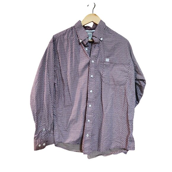 • Cinch Mens Small Western Button-Up Shirt Diamond Print Burgundy/White Cotton