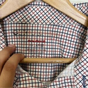 The multicolor shirt is made of soft cotton material and features a collared neckline and button-down collar style. The long sleeves are perfect for those cooler summer nights and the button closure adds a classic touch to this casual button-up shirt. This shirt is perfect for men who want to stay stylish while enjoying the fireworks show.