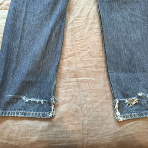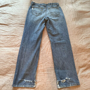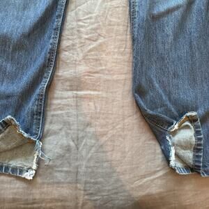 Distressing/Tearing at ankle hem due to boot wearing - shown