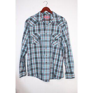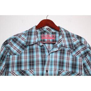 Cinch Modern Fit Mens Cowboy Shirt L Blue Black Plaid Western Casual Fit Relaxed