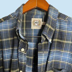 Cinch Shirt Mens Large Black Blue Button Down Check Plaid Embroidered Logo